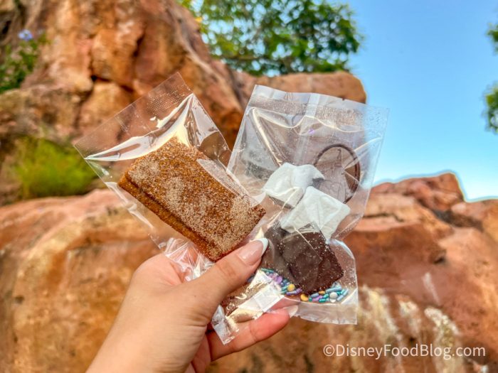 The graham crackers were also a bit bougier than the ones we were used to. They were much softer and had more of a gingerbread flavor than your typical graham cracker. The sweet spices in the cookie were definitely giving us a holiday feel. As for the chocolate, there wasn’t anything too special about it (but it was good!), and the 50th Anniversary chocolate coin and EARidescent sprinkles made the treat feel all that more special!
