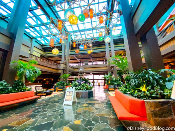 Disney also brought some updates to the lobby at the Polynesian Village Resort, including new chandeliers throughout the space. The new lightning was “inspired by glass floats, fishing nets, and oversized bamboo elements” to match the existing chandelier that can be seen in the center of the room.