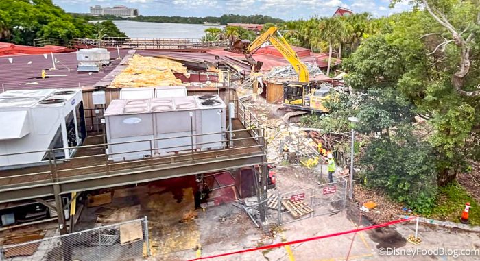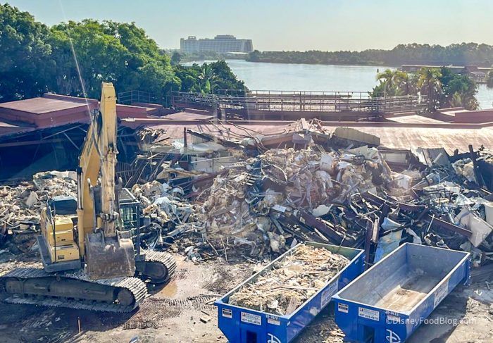 You can see areas where some spots have been demolished, and there are lots of crew members and equipment on the scene, getting things ready for the Polynesian’s next phase. As you can see in these photos, almost the entire Spirit of Aloha building has been demolished.