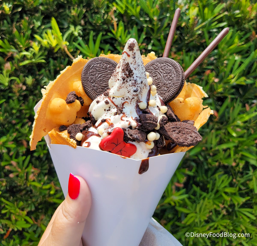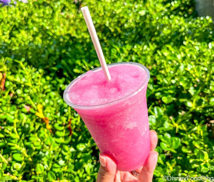 And rumor has it that this drink is the same as the Frozen Desert Violet Lemonade over at EPCOT’s Flower & Garden Festival! Of course, we had to put this rumor to the test. While it’s similar to the festival’s drink, it’s definitely sweeter and doesn’t have the same strong floral notes. However, if you’re looking for an alternative to the Violet Lemonade, this is pretty close in terms of flavor!