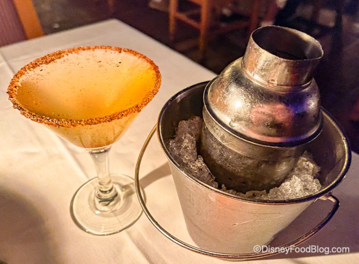 This is the restaurant’s upscale take on a classic lime margarita, served on the rocks with black ant salt rim in a metal shaker so you can pour it yourself. We thought it tasted like a super high quality margarita thanks to the Casa Dragones Tequila. It wasn’t too sweet, and was perfectly refreshing.