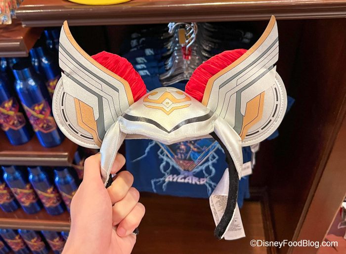 And finally, let’s check out the newest accessories! We got a new pair of Marvel ears this week, and let’s just say — we don’t think they’re going to be quite as popular as the Scarlet Witch ones. This pair, inspired by Thor: Love and Thunder, look more like a helmet than the classic ears you find in the parks, and we’ve found that the center part of the headband doesn’t sit normally on most heads. But if you’re a huge Mighty Thor fan, you can snag them for $29.99.