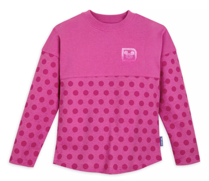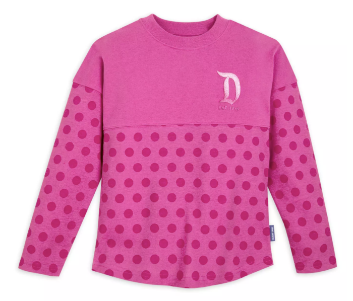 …and a Kids Orchid Disneyland Spirit Jersey, with both covered in polka dots along the sleeves and the bottom of the spirit jersey. Across the back of them is either the puffy pink ombre Disney World or Disneyland logos.