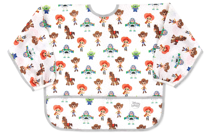 Let’s start things out with some Disney deals for your little ones! This Bumkins Sleeved Baby Bib comes in several different patterns, but our favorite has to be this Toy Story style. It has Woody, Jessie, Buzz, Bullseye, and the little green aliens!