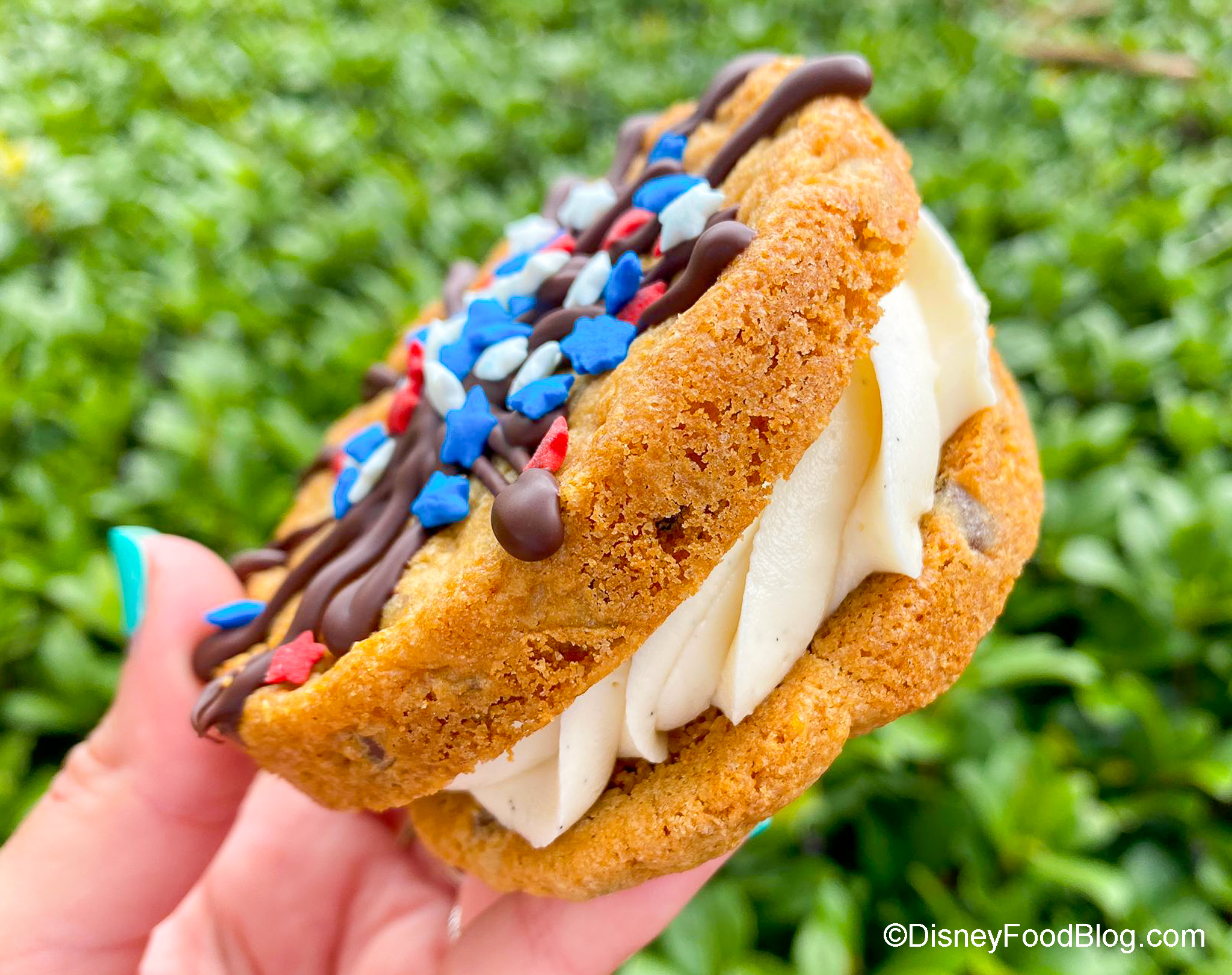 - Red, White, and Blue Cookie Sandwich: Vanilla-scented buttercream sandwiched between two gluten-free chocolate chip cookies (New) (Available July 1st through 4th)
