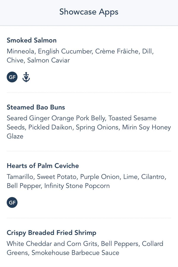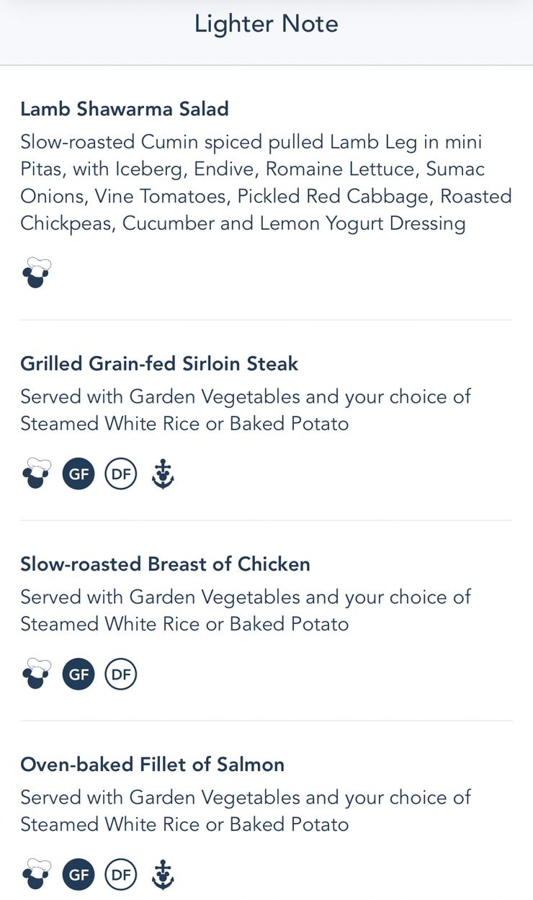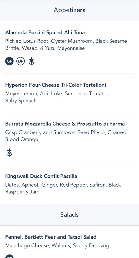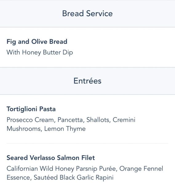 We’ve had a look a some of the exciting entertainment offerings on board, not to mention the thrilling recreation and world-class dining options. The ship has officially been christened (check out our coverage of that event here!), and now we’re bringing you a look at menus for some of the dining locations on the Disney Wish!