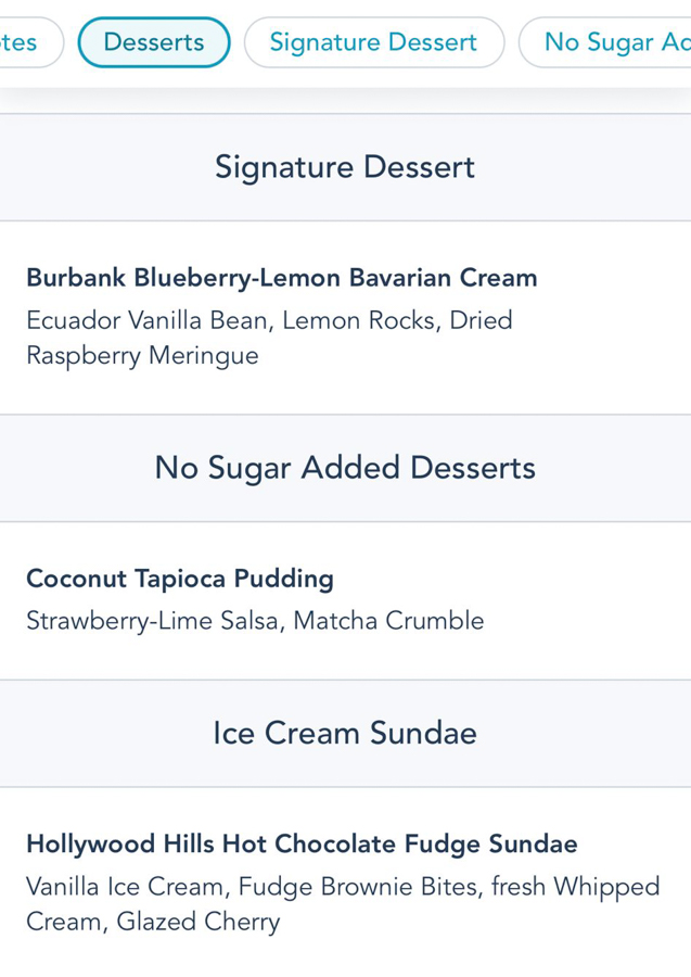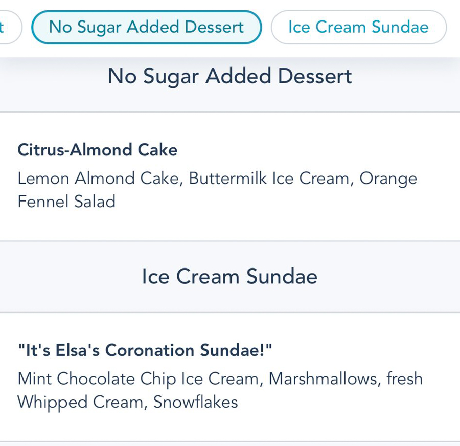 There’s also a sugar-free dessert, and an ice cream sundae!