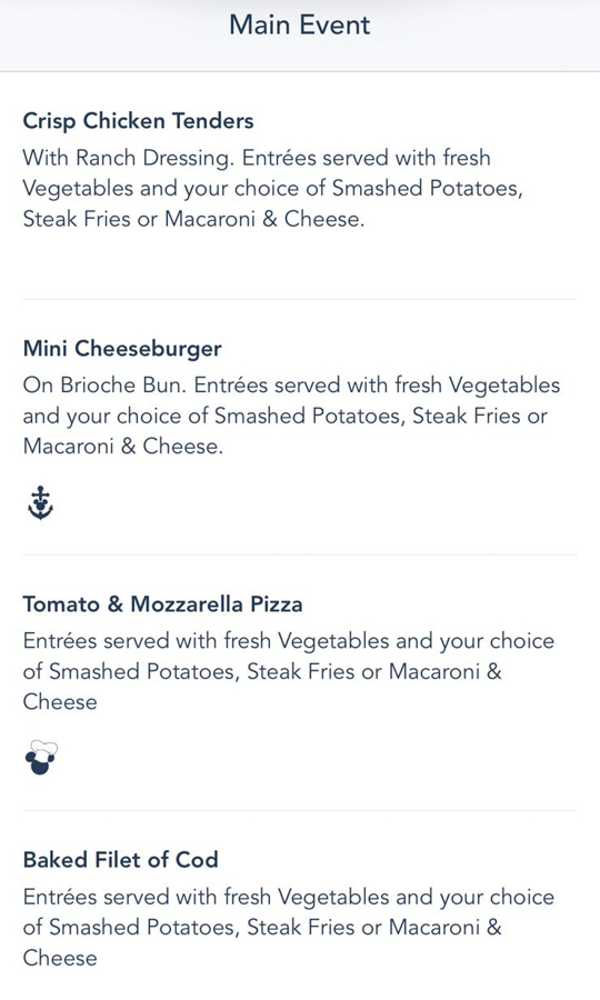 The Disney Wish offers different types of dining depending on what type of experience passengers are after: adult-exclusive dining, casual dining, and rotational dining. With rotational dining, guests rotate between the three restaurants on board, and those are the menus we’re taking a look at!