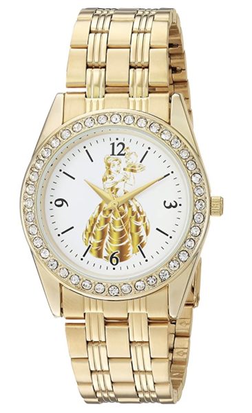 This is a gold-looking watch with a bedazzled face that shows Belle in her iconic yellow dress holding a stack of books that Mrs. Potts and Chip are standing on top of. This watch is ordinarily $59.99, but you can get it right now for $34.20.