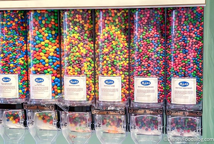 The Cast Member wasn’t sure when Skittles would return to the popcorn station or bulk candy wall at the Confectionery, but we’ll keep an eye out for updates.