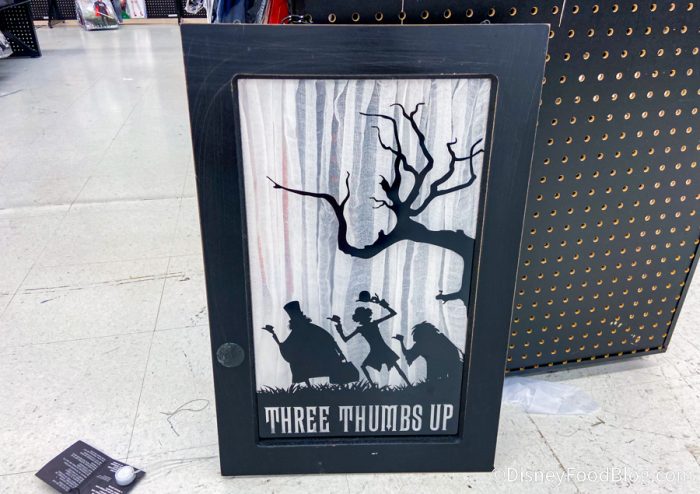 Now, for the front room of your home, check out the Three Thumbs Up Light-Up Haunted Mansion Sign for $29.99.