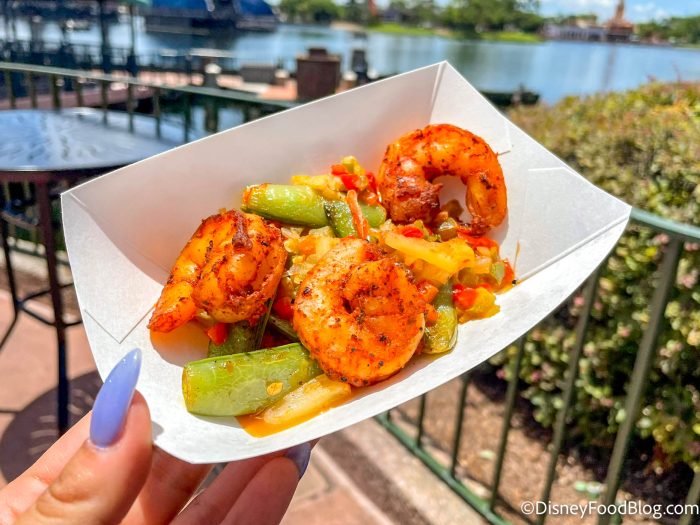 Despite all the problems with the beverages, we thought the food at this booth was top-tier. The lamb was definitely well prepared and didn’t have the game taste that lamb can sometimes get. The shrimp are a great option for those looking to eat something with a little kick, and the cake is perfect as a sweet treat to break up all that savory or end the night at EPCOT.