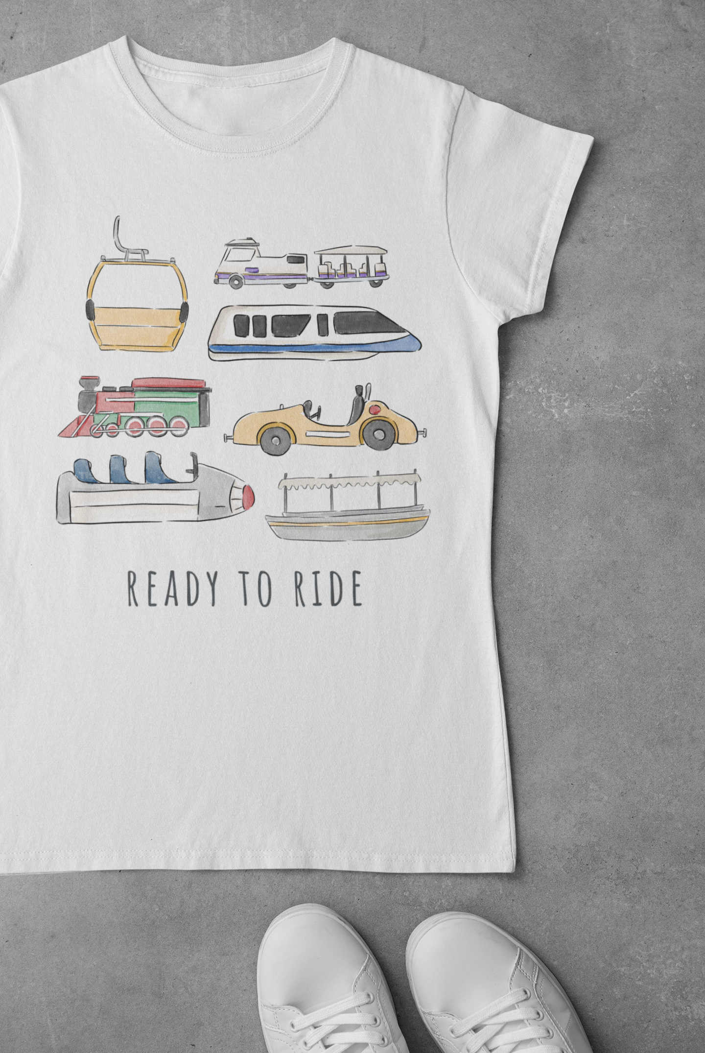 It’s a white shirt with the words “Ready to Ride” and ride vehicles from attractions like the Jungle Cruise and Space Mountain, and even the Monorail, parking trams, and the Skyliner! If you’re looking for a matching shirt for your next family vacation, this is the one for you because it also comes in kids, toddler, and baby sizes.