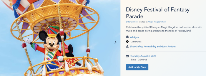 Other than those four August dates, Festival of Fantasy still shows the usual 12PM and 3PM showtimes between July 25th and September 3rd. We’ll be keeping our eyes peeled for any future performance time changes, but for now, it looks like just those four August dates show reduced showtimes.