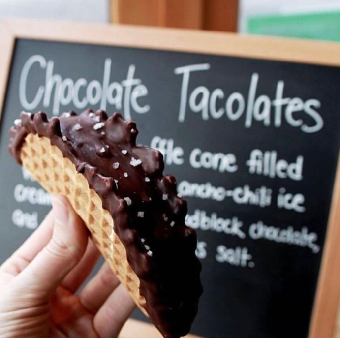YUP. Salt & Straw will bring the heat this National Taco Day with their Chocolate Tacolates. Their Choco Taco is a handmade waffle cone shaped like a taco shell, stuffed with cinnamon ancho ice cream, dipped in chocolate, and sprinkled with flaky salt.