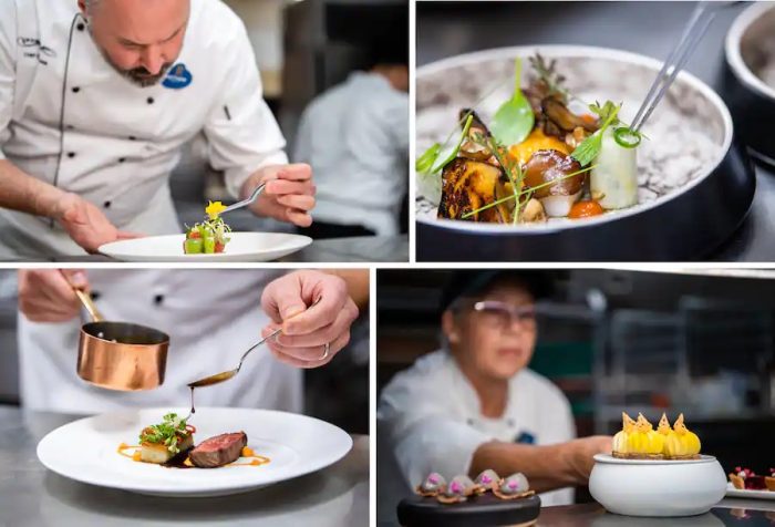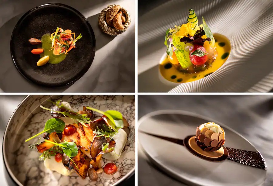 Recently, Disney shared that some menu items guests may experience during upcoming meals include a Glacier 51 Toothfish with charred mushroom and sambal, Heirloom Tomatoes with gazpacho, and 100 Year Balsamico. There is also a Carrot Tikka Masala with cilantro and puri bread. And you can’t forget about dessert. Those with a sweet tooth may encounter the Spectrum of Chocolate, featuring four specialty sourced chocolates and a tableside presentation of sabayon with notes of Madagascar vanilla bean, Champagne, and Grand Marnier.
