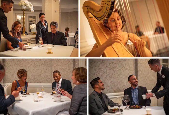 Victoria & Albert’s serves dinner in a variety of different ways. You can pick from 3 experiences: The Chef’s Table (an up-close look at the kitchen in a specialty dining experience for a small number of guests), Queen Victoria’s Room (which serves a tasting menu and is limited to just 4 couples per night), and The Dining Room.