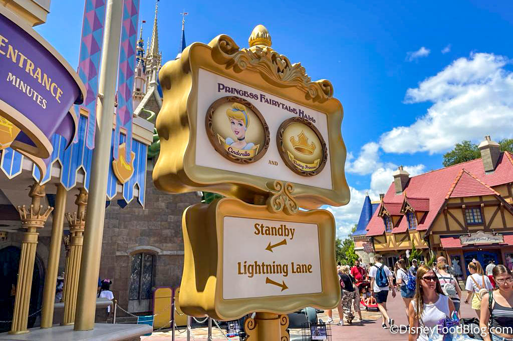 The hall is filled with colorful portraits of Disney Princesses to view during your wait in line. Of course, you can also opt to use the Lightning Lane to bypass the standby line if you’ve purchased Genie+ for the day.