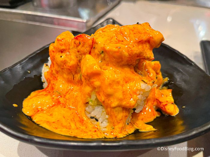 - Spicy Roll is now Spicy Crunchy Roll — Tuna and Salmon Mix topped with Volcano Sauce and Tempura crunch for $14