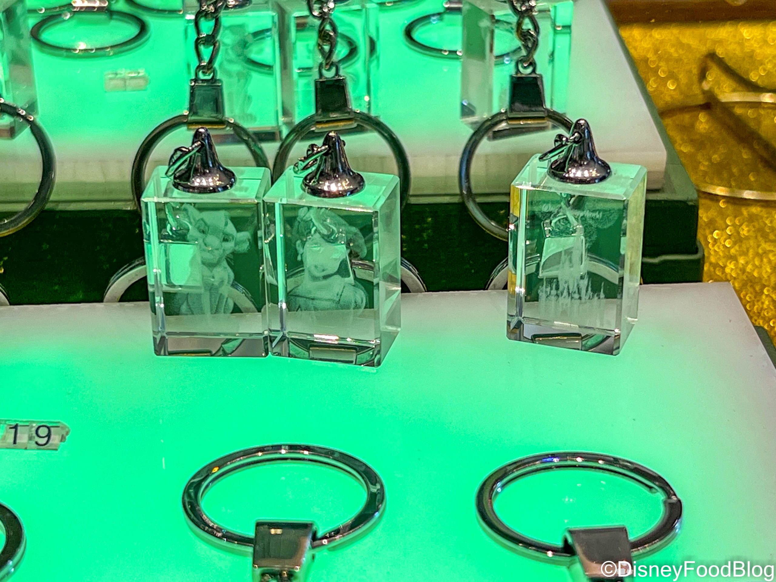 There’s a new display over here that showcases characters you can have etched into various collectibles. There were Cube Keychains for $19 each…