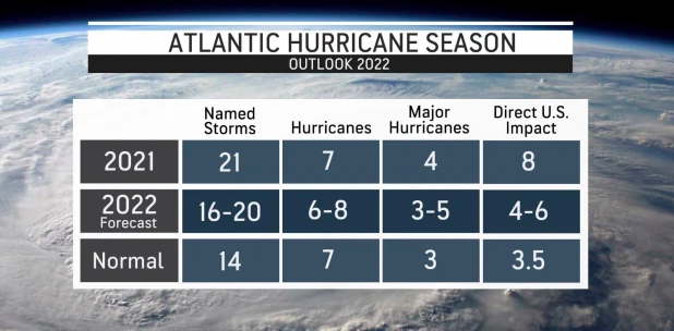 The National Oceanic and Atmospheric Administration (NOAA) has also predicted an above-average hurricane season for 2022 in the Atlantic. NOAA initially forecasted a range of 14-21 named storms, 6-10 hurricanes, and 3-6 major hurricanes. That has since been updated slightly, which we’ll discuss in a minute.