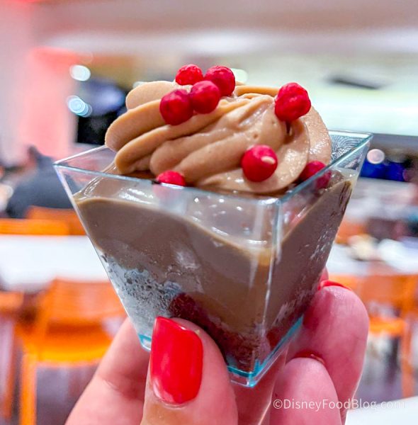 Next was the Oreo Cheesecake Mousse. This is topped with crumble and is meant to be reminiscent of the Cookies ‘n Cream cheesecake mousse served at Cinderella’s Royal Table.