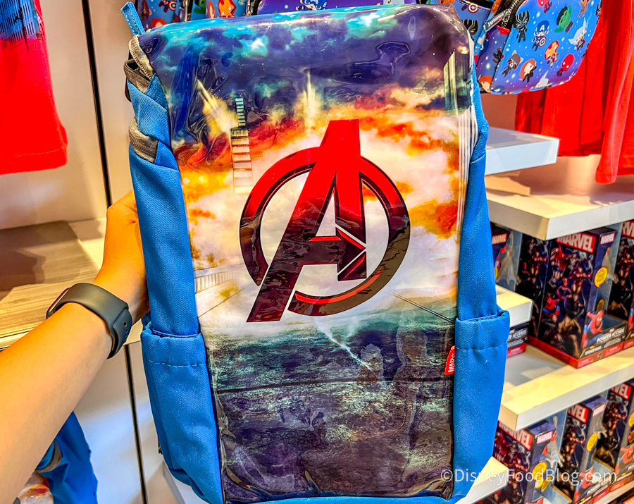 Also available in Keystone Clothiers is this Avengers backpack. It features a sort of abstract landscape or cityscape background too.
