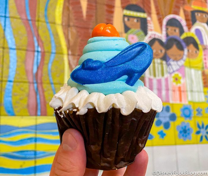 - Cinderella Cupcake: Vanilla cake with vanilla crème custard filling, buttercream, white chocolate slipper, and fondant pumpkin