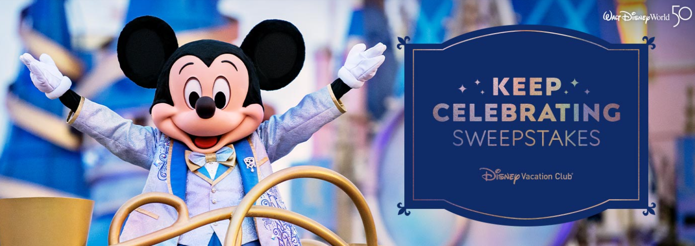 The Disney Vacation Club is hosting the Keep Celebrating Sweepstakes, in honor of Disney World’s 50th Anniversary. It will provide one lucky winner with a trip to experience “The World’s Most Magical Celebration,” as well as the opportunity to learn more about the Disney Vacation Club.
