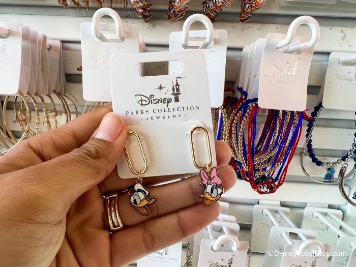 At Creations Shop, we spotted these Donald and Daisy Earrings. They are gold earrings with Donald and Daisy charms. They are $16.99.