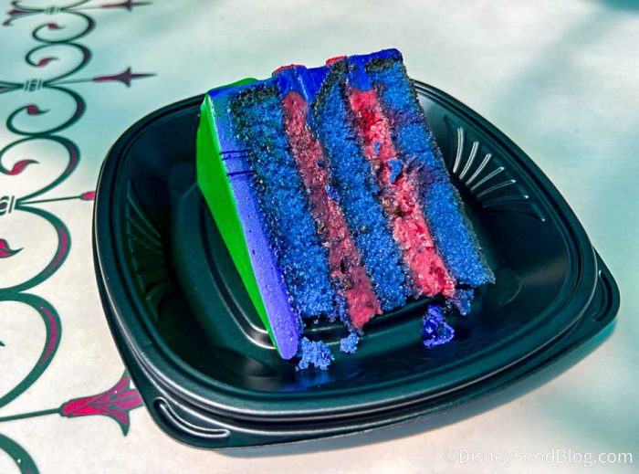 This is the NEW Halloween Cake from French Market Restaurant in Disneyland Park. It’s a purple-colored vanilla sponge, with raspberry mousse, fresh raspberries, and candied cocoa nibs for $6.99. We were VERY intrigued by the picture that Disney released when they announced this new food, so we wonder what it will look like in person!