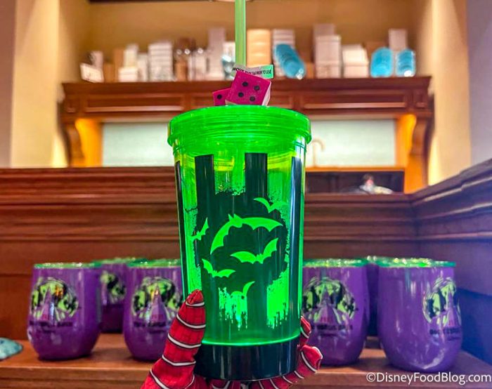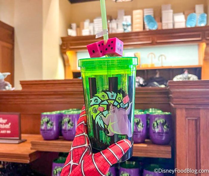 If a tumbler is more your style, you can grab this one themed to Oogie Boogie with a bright green and black design. It comes with a straw and even has two pink dice on the top!