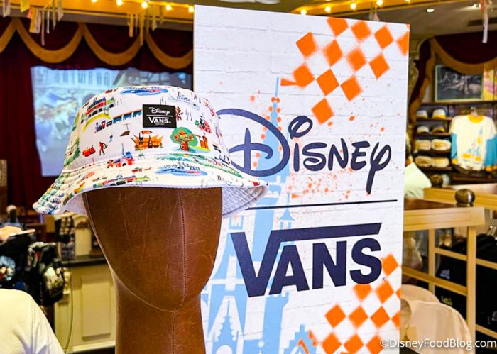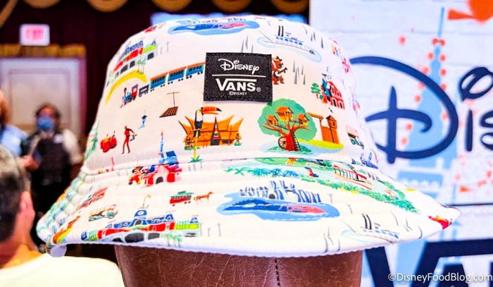 The Vans collection has been pretty popular so far, and if you haven’t been able to make it to the parks to shop it yet, then you’re in luck! First up, we’ve got the Walt Disney World Bucket Hat for Adults by Vans. The pattern features all kinds of icons from the parks.