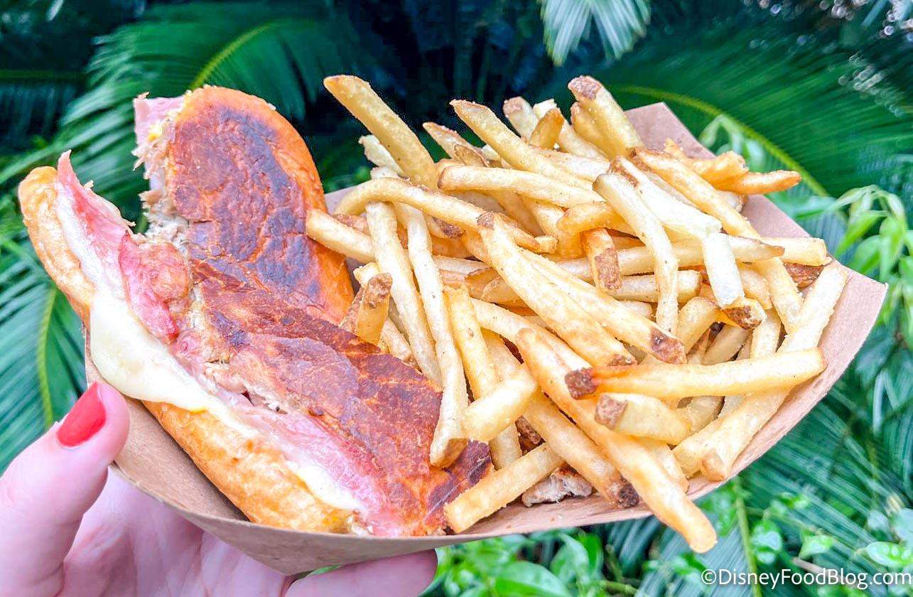 #2: this was not exactly a large portion (which might have been why they made up for it with fries, but still). If you’re looking for something that’ll really fill you up or will be hefty enough to share, this might not be it. It was pretty thin (Cuban sandwiches are pressed down generally but this was thinner due to a smaller amount of meat, in our opinion). Even Disney’s image promoting it seemed to make it look a little heftier.