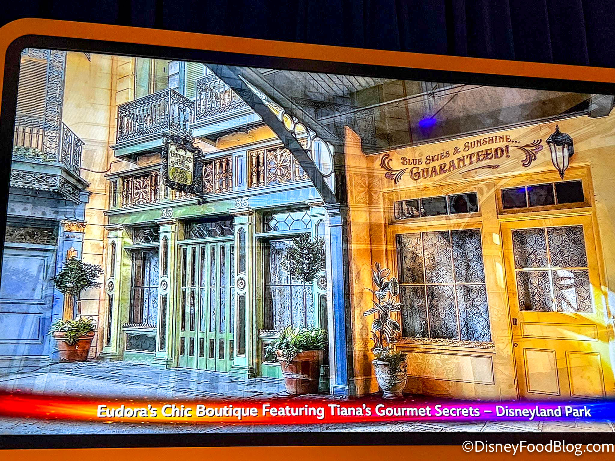 Eudora’s Chic Boutique featuring Tiana’s Gourmet Secrets is the name of the NEW Tiana-themed store coming to Disneyland Resort — specifically over at Disneyland Park! We got a first look at this spot and some concept art for it during the D23 Expo.