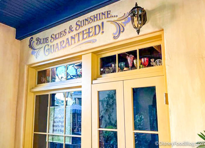 We also got a peek at some of the outdoor decorations for this store — with a sign above the entrance that says “Blue Skies and Sunshine…Guaranteed!” We’re singing the song in our heads already. 😂