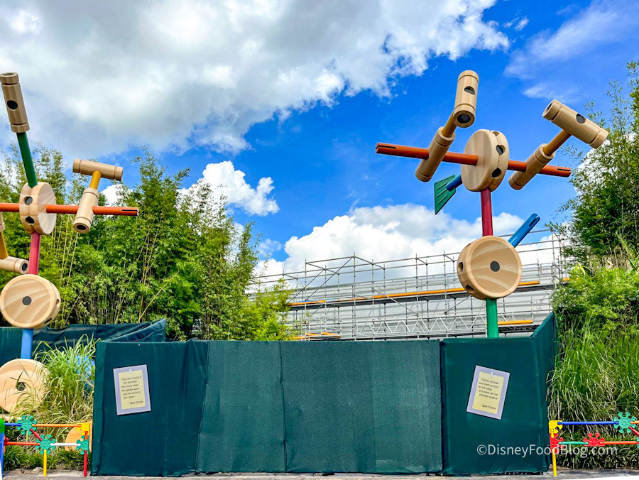 Look what has popped up over at the Moana attraction coming to EPCOT! We spotted this detailing go up last week, and we’re so excited to see crews working on putting finishing touches on this area. Plus, we learned at the D23 Expo that the attraction would be opening in late 2024!