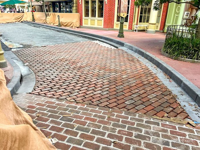 New brick pavers are being laid over on Center Street, so for now it’s still blocked off. Disney has been working on this area for a long time, but now we’re excited to see some real progress being made!