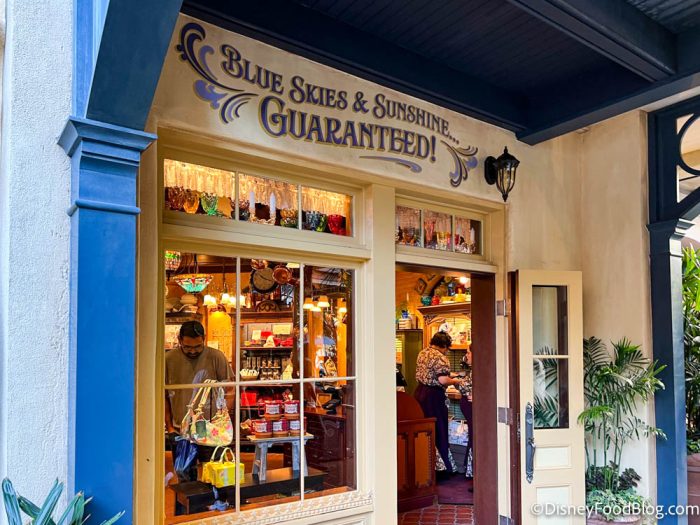 Above the entrance to the shop, there’s a quote that reads “Blue Skies & Sunshine…Guaranteed!” This is from the song “Dig a Little Deeper” in Princess and the Frog.
