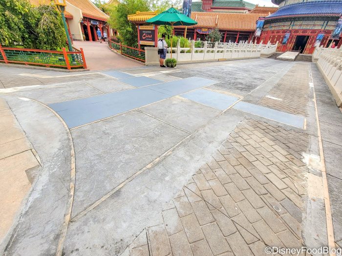 We recently spotted some pavement work being done over at the China Pavilion, just beyond the grand entrance at the center.