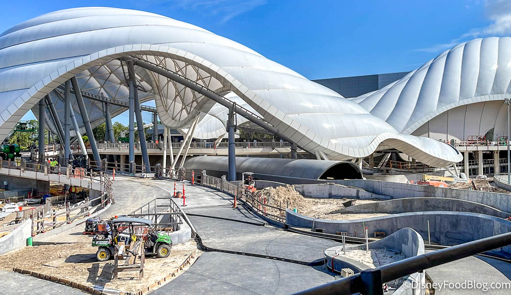 Never did we think we’d get so excited about cement, but here we are. Some fancy free-form shapes have appeared down in front of the TRON canopy. We caught a glimpse of crews working on them recently!