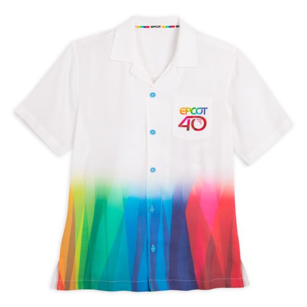 The EPCOT 40th Anniversary Woven Shirt features a fun rainbow ombre effect on the bottom. It’s $59.99.