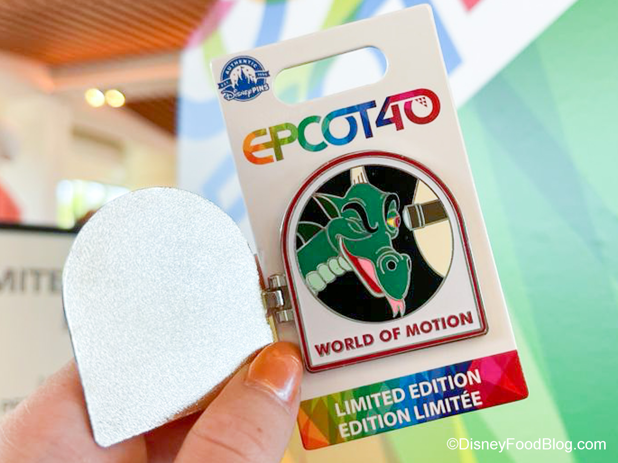 …then you open them up and they have different EPCOT pavilions represented inside. This one is a World of Motion Pin.