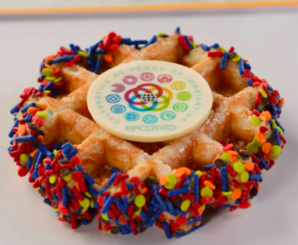 First of all, there will be some celebratory FOOD! Things coming to the park include the EPCOT 40th Liege Waffle…