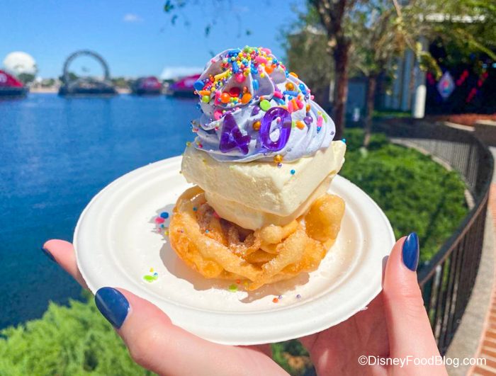 We got our hands on the EPCOT 40th Celebration Funnel Cake! 🎂