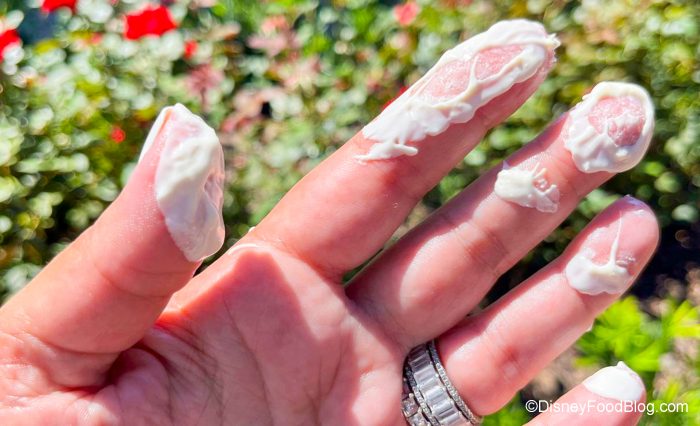 However, this thing was MESSY because white chocolate just melts under the Florida sun. It just got all mushy and we ended up with our fingers covered in it.