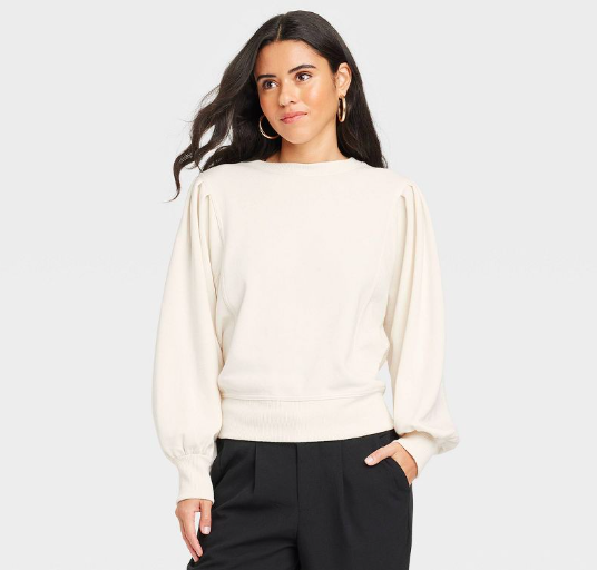 Some basic fall essentials are also on sale, like this Women’s Fleece Sweatshirt. It’s a pullover sweater with long bishop sleeves and a soft fleece material on the inside.