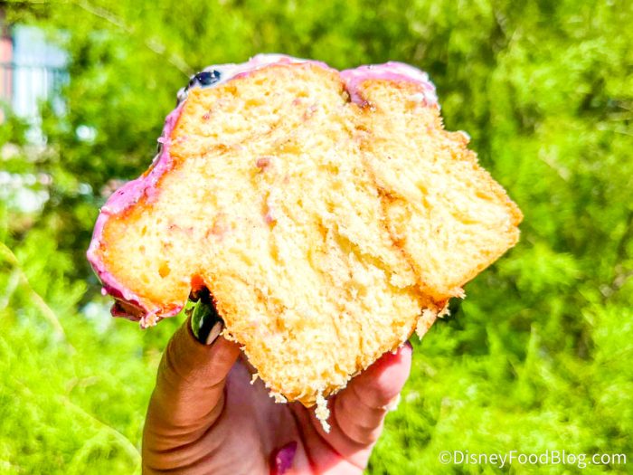 the blueberry cinnamon roll isn’t even a cinnamon roll… looking inside there isn’t a trace of any cinnamon filling whatsoever.. BOO Disney.. this looks like a over priced eat only if you’re starving item!