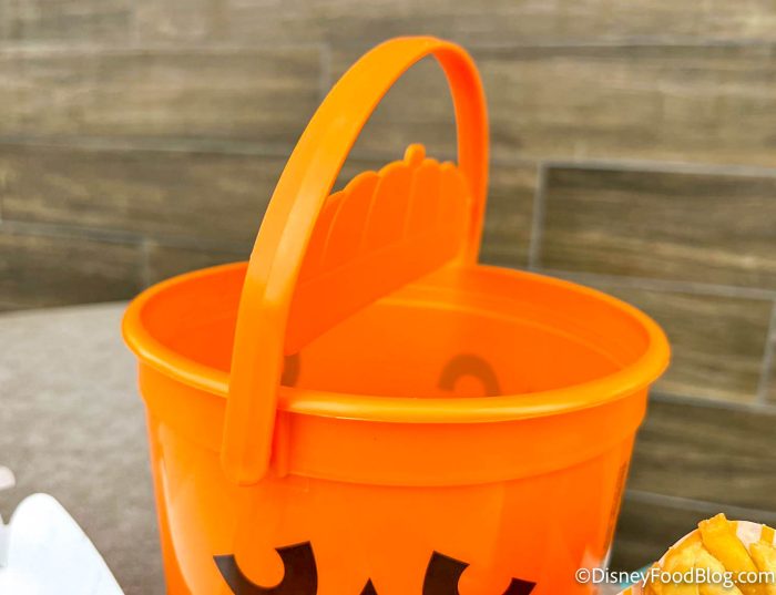 Known as “Boo Buckets,” there are three characters you can get, including McBoo (a ghost), McGoblin (a witch), and McPunk’n, which is the one we got. Our bucket was double-sided, with one side featuring a happy jack-o’-lantern face, while the other side was a little spookier.