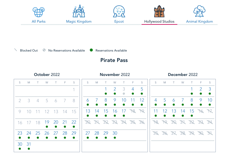 …but all Hollywood Studios park pass AP availability is completely gone for November 3rd.
